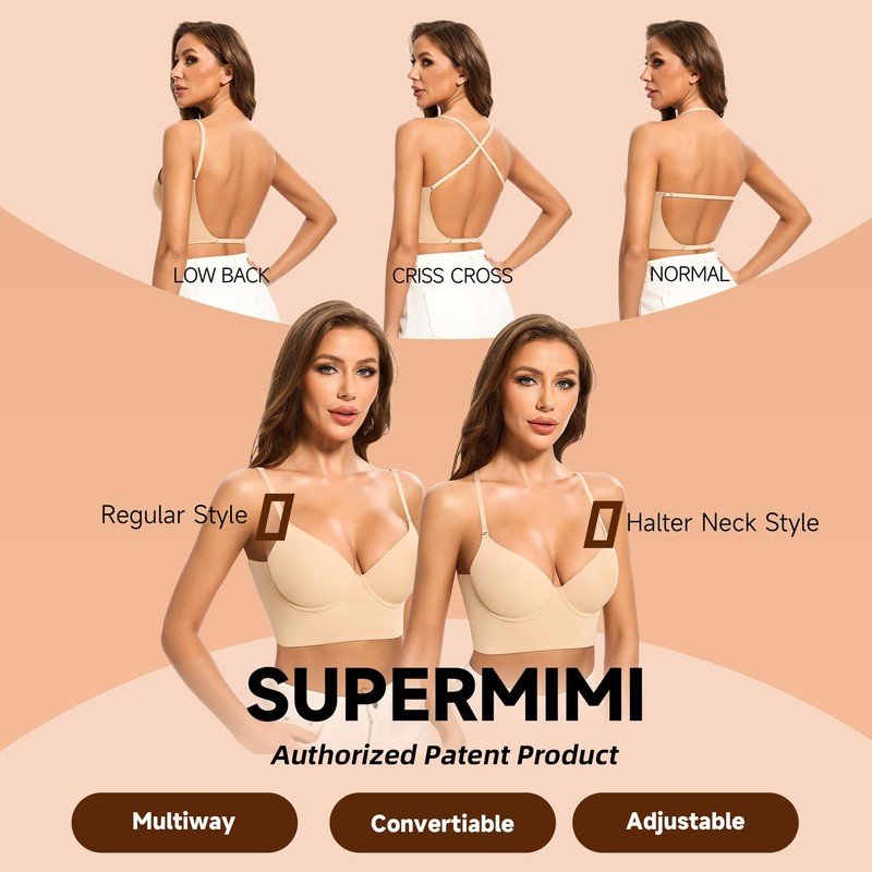 - MULTIFUNCTIONAL ADJUSTABLE STRAPS - Showcasing a broad U-shaped back, this bra elegantly emphasizes your back and shoulders. Its adaptable design makes it suitable for wearing with a variety of outfits.