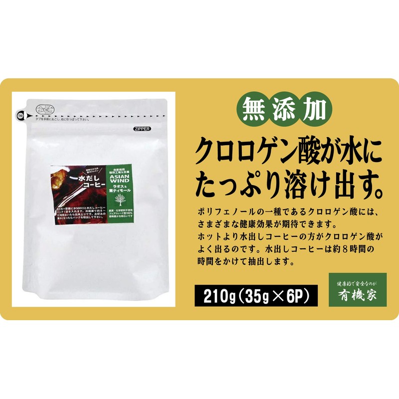 Low Caffeine, No Pesticides or Chemical Fertilizers, Cold Brew Coffee, Asian Wind, 7.4 oz (210 g) (1.2 oz (35 g) x 6 Packs, Compact, Cold Brew Contains Less Caffeine and Tannins than Boiling Water Extract, and when warmed, it turns into a different hot c