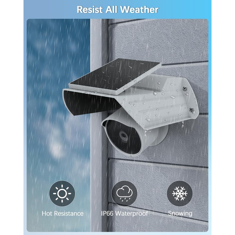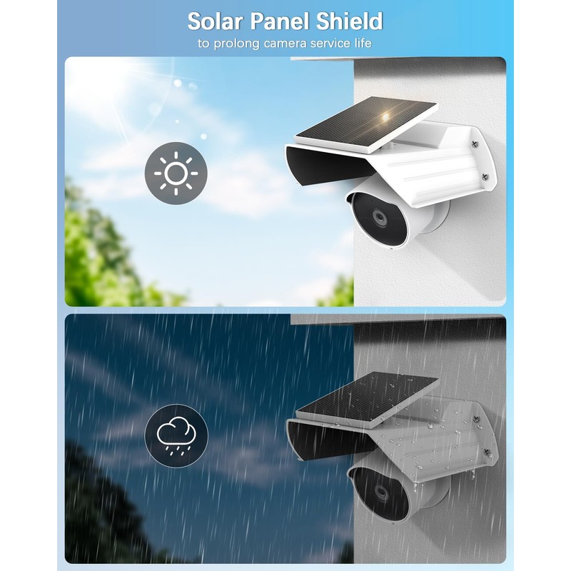 - 【Sun and Rain Protection】The solar panel blocks sunlight and rain, enhancing image quality while protecting the camera from UV damage and weathering. With an IP66 rating, it can withstand heavy snow, rain, and harsh conditions, operating in temperatures ranging from 14°F to 131°F (-10°C to 55°C)