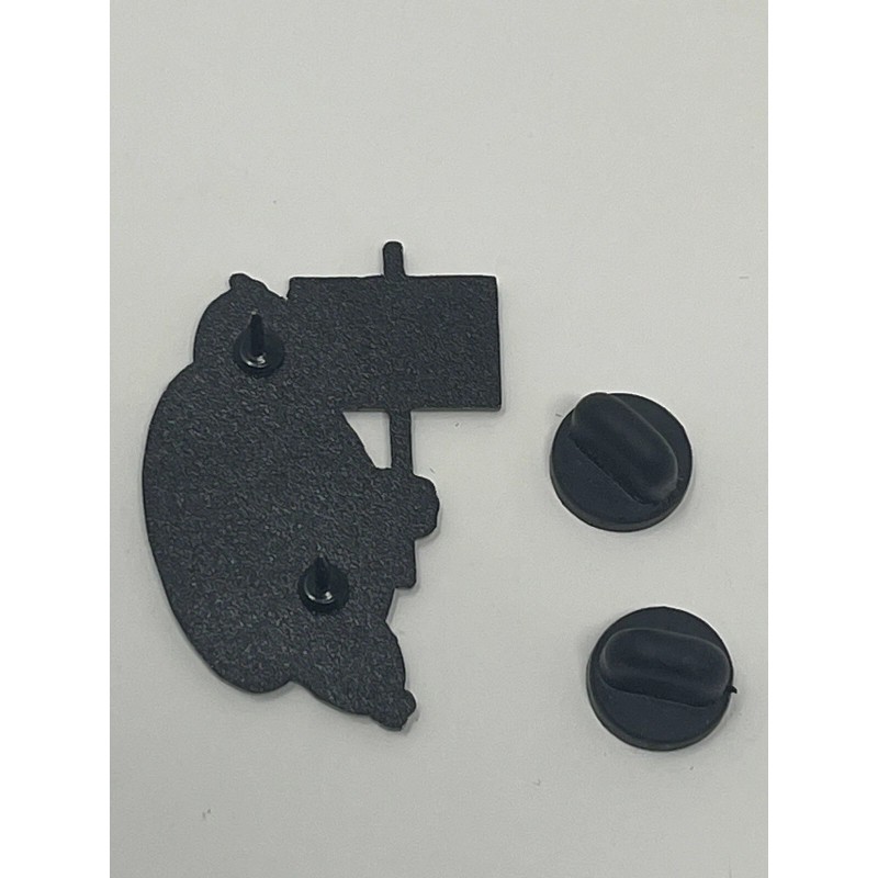 A custom designed enamel pin, created by myself, and manufactured by Night Owl Printing in Austin TX