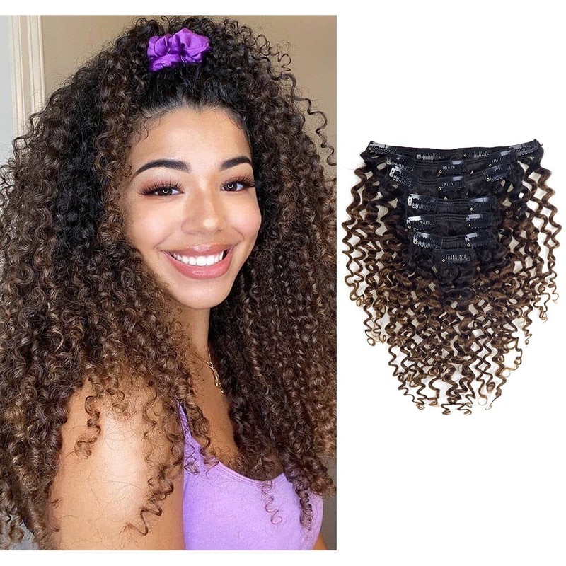 Loxxy Clip in Human Hair Extensions Jerry Curly #1B/4 color High Grade Soft Remy Human Hair Extensions for Women 14inch Double Weft 120g/set 7Pcs/lot And 17 Clips Per Pack