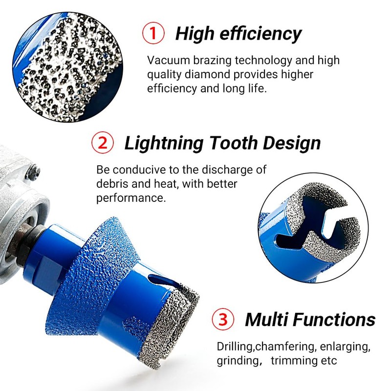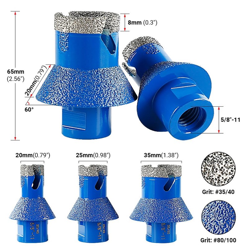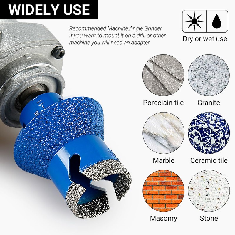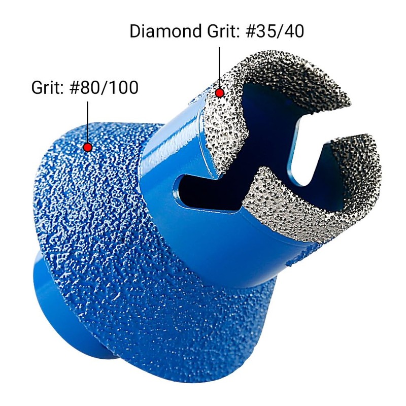 - DIAMOND COATED: Features premium diamond grit coating (#35/40 and #80/100) for efficient drilling through quartz, marble, and stone surfaces