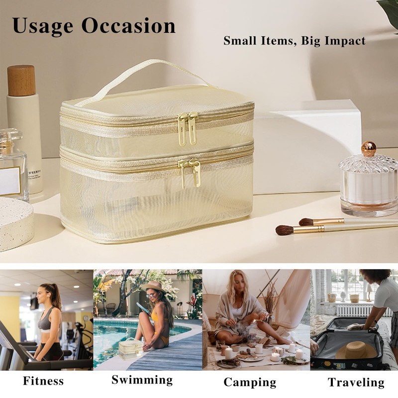 - Unique dual-layer mesh design: The LOZOENNR makeup bag features a double-layer mesh design, offering ample space while maintaining excellent visibility for easy access to your cosmetics and toiletries. The mesh design keeps the makeup bag breathable and odor-free.