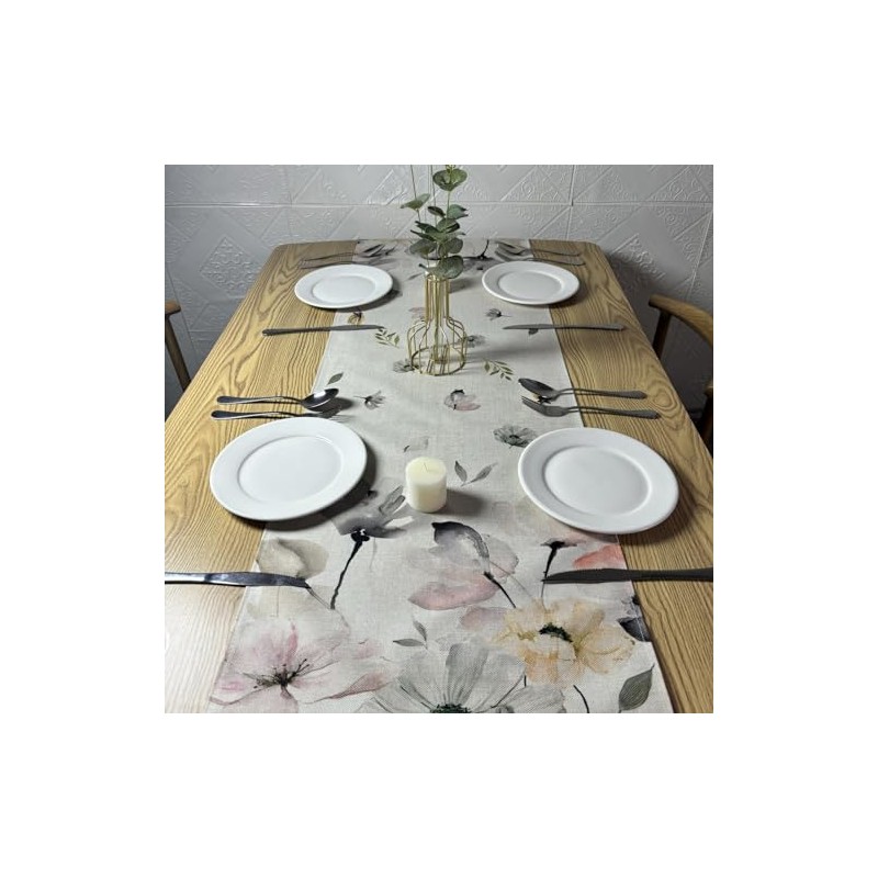 - Table runner in elegant design: our floral table runner, modern style. The high-resolution digital printing technology makes the pattern of the natural table runner colourful and bright without fading or shrinking. Can be used as a table runner spring and fits any tableware, cutlery, napkins, placemats and centrepieces.