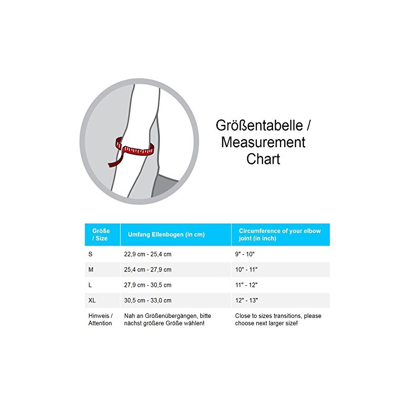 - The processed materials ensure continuous fluid transport and ensure a comfortable wearing experience thanks to their breathable texture. The bandage transports sweat to the surface where it can evaporate. At the same time, the elbow support stores heat, which in turn can have a positive influence on the course of the disease or protects against injuries in advance. Air holes on the inside provide additional ventilation of the skin.