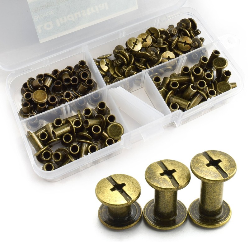 LQ Industrial 75 Sets Bronze M5 Chicago Screw Assorted Kit Slotted Phillip Head Binding Screws Rivet Assembly Bolt Nail Rivet for Book Binding DIY Leather Craft M5x6 M5x10 M5x12