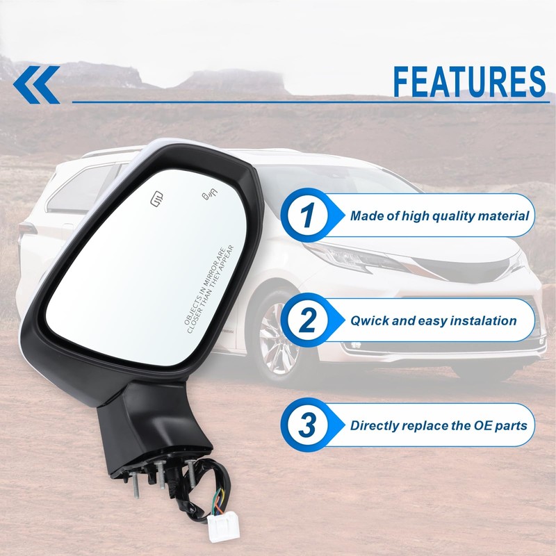 - 🔺Introduction: Damage to rearview mirrors due to long-term exposure to harsh environments abnormal sounds or unintentional accidents; Lqito’s product Manufactured with PA66-GF30 material housing, high performance motor and more high temperature resistant glass. Let you perfectly cope with the harsh environment, enhance your driving experience Our mirror is reliable and stable, Durable Construction with Good Hardness and Toughness, Corrosion Protection, Providing Long Service Time.