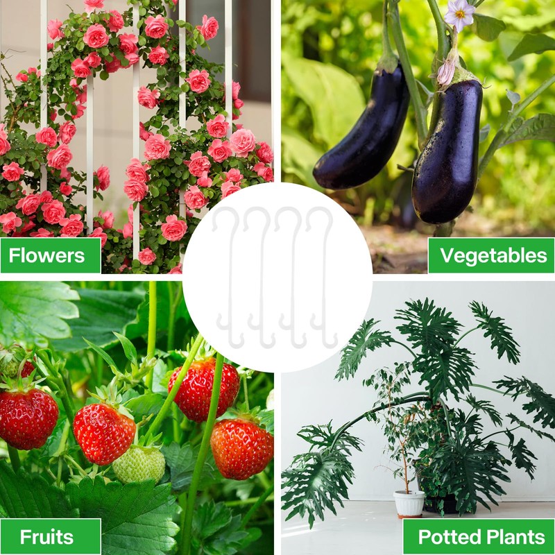 High-quality plant hooks are perfect for attaching tomatoes, cucumbers, eggplants, beans, roses, ivy, blackberries and many other climbing plants.