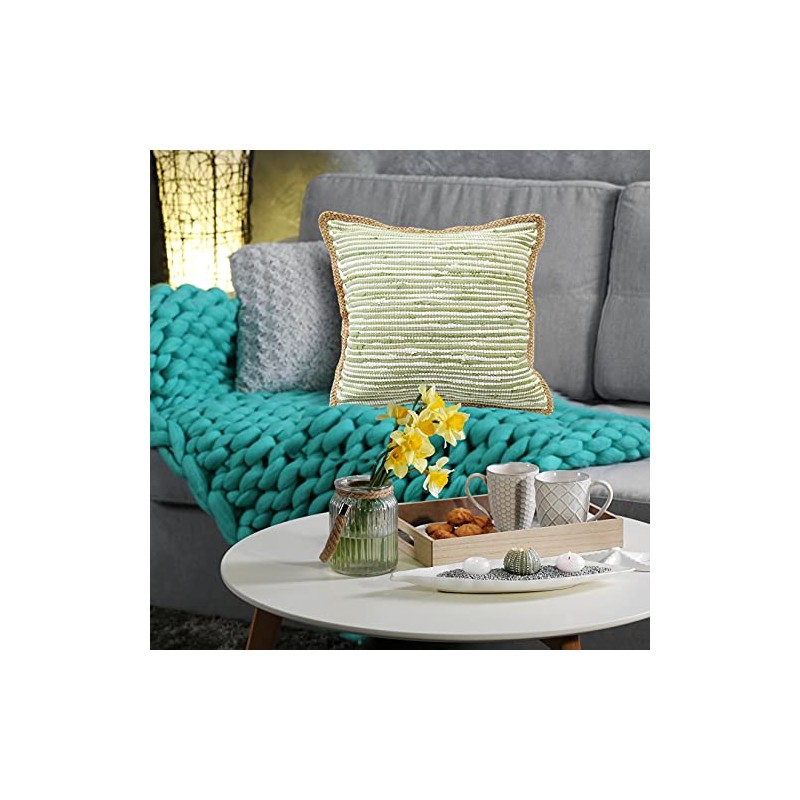 • VERSATILE STYLE: Soft sweet pea green and white tones allow this piece to span all seasons and various styles. It’s the perfect addition to any sofa, loveseat, couch, or bed in your living room, bedroom, nursery, or guest room.