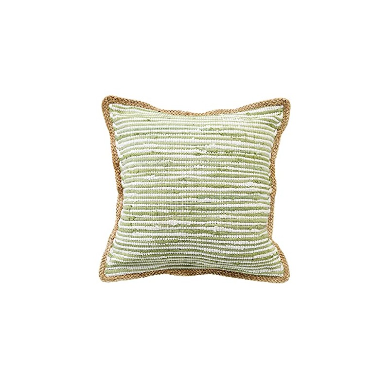 LR Home Sweet Pea Striped Jute Bordered Throw Pillow, Green/White/Tan