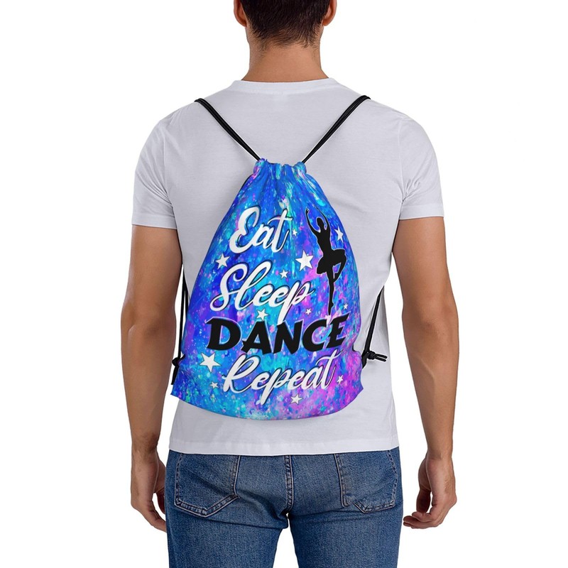 LRERNAJF Eat Sleep Dance Repeat Drawstring Backpack Gym String Bag Drawstring Sackpack Sport For Womens Mens