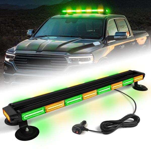 LRTER 34inch 166 LED Emergency Rooftop Strobe Lights Bar Flashing Safety Traffic Advisor Warning Hazard Snow Plow Light W/Magnet Base for Work Trucks Vehicles Construction Tow Pickup Amber Green