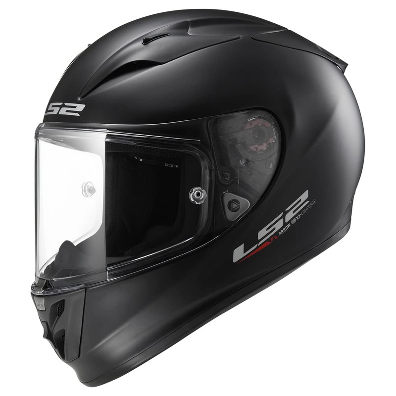 A high-performance full-face motorcycle helmet designed by racers for racers and now updated with new standards – The LS2 Arrow Full-Face Street Helmet was designed by a team including our engineers in Spain and our riders from Moto 3, Moto 2 , WSBK and FIM EWC. Together, they developed the safest, most innovative performance helmet on the market. The lightweight, aerodynamic Kevlar reinforced Carbon Fiber shell slices through the wind and remains stable on your head. We use 3 shell sizes to offer a perfect fit. The eye port is taller so you can look farther down the track when tucked-in. It’s extra wide so you can see who’s coming beside you. The optically correct, Class A polycarbonate face shield swaps quickly and easily using tool-less quick release technology. This race-ready 3mm flat shield comes with tear-off posts is Pinlock ready (Pinlock insert included at no extra charge). The Emergency Quick Release System removable cheek pads are precision cut from one solid piece of high-quality foam using LS2’s 3D Laser Technology. The technical fabric liner is fully removable and washable (we recommend you wash by hand and air dry). The fabric wicks moisture to help keep you dry and comfortable. Fully adjustable flow-through ventilation allows you to stay cool. The Arrow uses a traditional “Double-D Ring” strap for a secure fit. Whether you’re a racer, sport rider, or commuter, you’ll find the performance you need. This model has a LONG OVAL fit. The shape is very Shoei-like, but they run small for a snug, racer fit. We call it a "200 M.P.H. fit." If you want a G.P. fit, buy your regular size. If you want a more comfortable fit BUY ONE SIZE LARGER THAN NORMAL. Designed at LS2 world headquarters in Barcelona, Spain. Meets or exceeds FIM FRHPhe-01, DOT FMVSS 218 and ECE 22.05 certification.