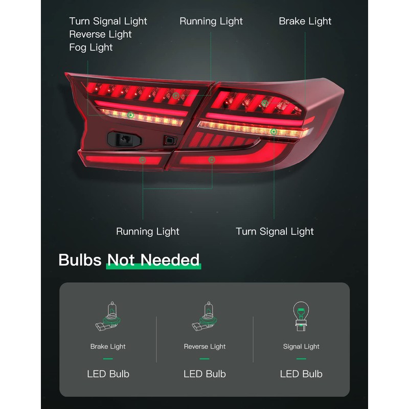 - Compatible With -Black Housing Red Lens LED DRL Tail Light Assembly fit For Honda For Accord 4-Door 2018 2019 2020 2021 2022 OEM:33500TVAA01 33550TVAA01