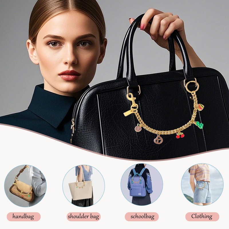 - Material: The cherry bag charm and charm of the product are made of zinc alloy, which makes the whole bag charms for purse extender chain look very beautiful and bright and not easy to fade and damage