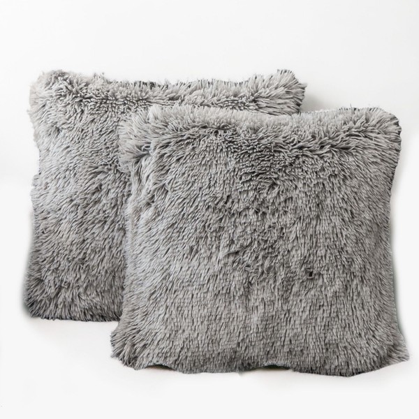 LSC 2 Pack Cushion Inserts 18” x 18” (45cm x 45cm) with Faux Fur Throw Cushion Cover Hollow Fibre Cushion Pads Bounce Back Square Cushion Inner for Sofa Bed Couch Scatter Cushions (LIGHT GREY)