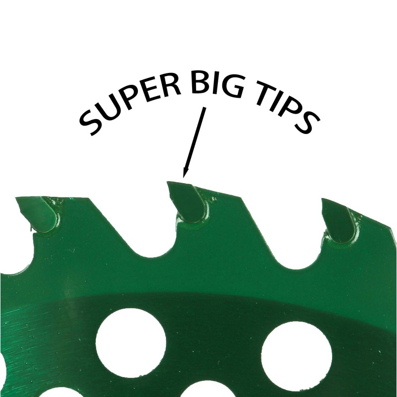 - Carbide tips have 10X life than plan blade. U type brazed tips, make the tips not easy break. 9" blade super light can use on Battery cordless Brush Cutter, Women can use. Carbide tips have 10X life than plan blade, very Sharp can cut 4" small tree.
