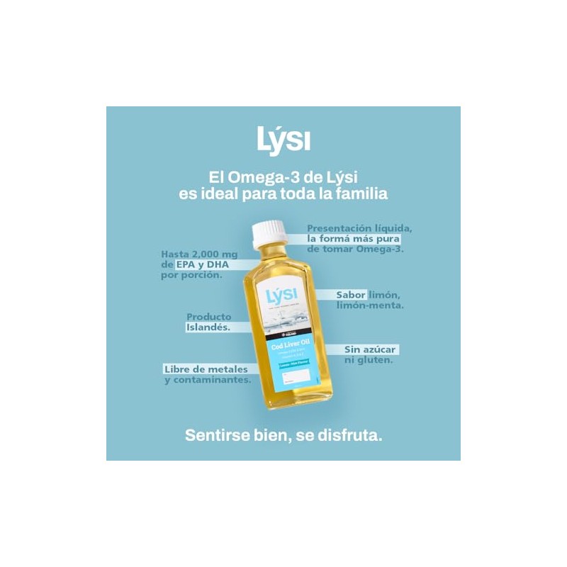Lýsi - LÝSI, Omega 3 en Aceite de Bacalao, Contiene Vitaminas A, D3 y E, Sabor limón/menta, Para toda la familia, Contribuye a la salud cerebral, de la vista y ósea, Sin gluten y azúcar, 240 ml.. ⭐ Calidad premium certificada con excelentes reseñas. Tecnología avanzada y rendimiento superior. 💎 Calidad superior certificada. Ideal para quienes buscan lo mejor en calidad y estilo. Producto auténtico con satisfacción total asegurada. ¡No te quedes sin el tuyo y aprovecha esta oportunidad única!