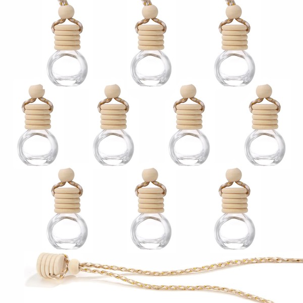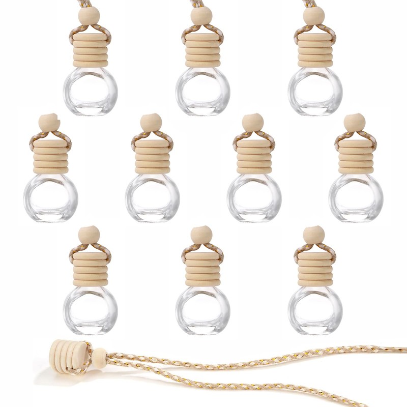 LSRVNM LSRVNM 10 Stcke 8ml Auto Parfm Flasche Leer, Duft Diffusor fr Auto, Glasflaschen Diffusor, Nachfllbar, Wiederverwendbar, fr Auto, Zuhause, Bro, Parfm Decor(Runden)