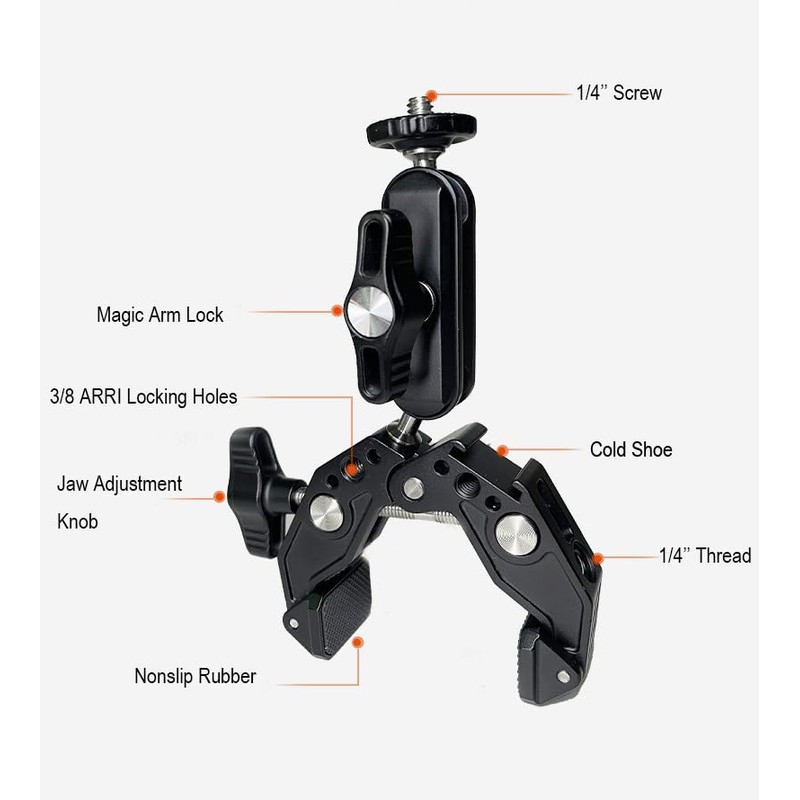 LSYRIA Super Clamp with 3" Dual Ballhead Magic Arm