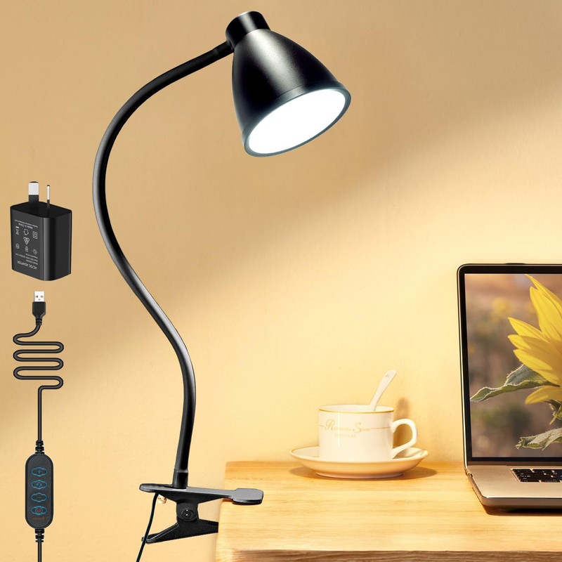 - 360° Flexible Gooseneck and Long USB Cord and a reliable RCM, SAA Listed AC Adapter: Sturdy flexible gooseneck allows you to adjust your clip light with ease and to direct the light wherever you want. Easy to plug the USB cable into any available USB port (laptop/desktop/power bank/USB adapter) to power the lamp. An AC adapter is included, which is RCM, SAA certified, much safer than some other adapters, be at ease!