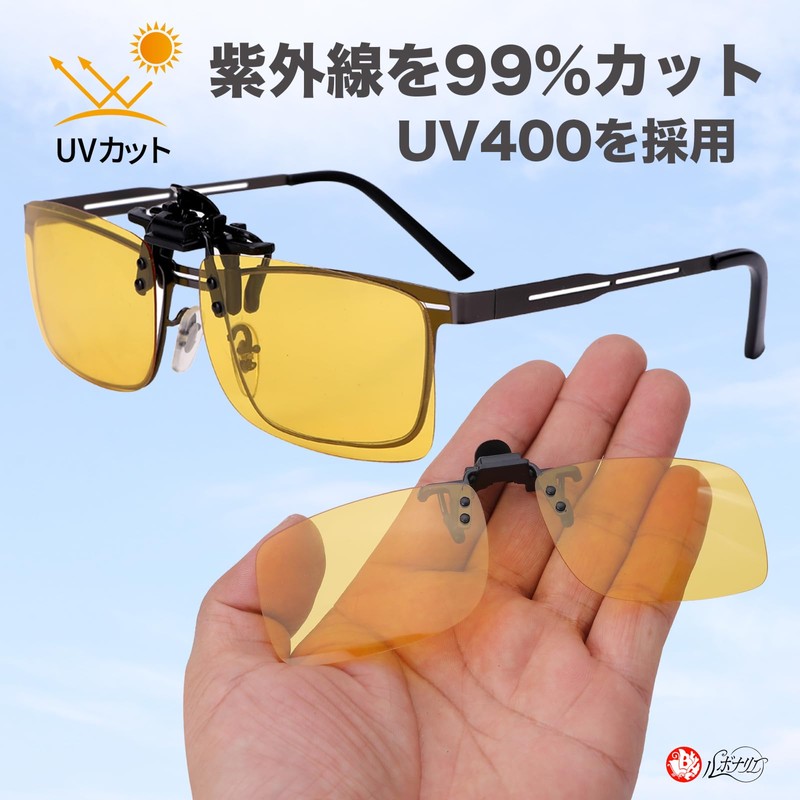 - Clip-on type that easily attaches to your glasses, so you can use it with your vision corrective glasses. Even people with myopia can easily obtain the effects of sunglasses