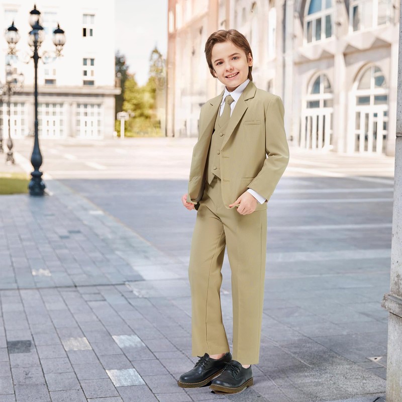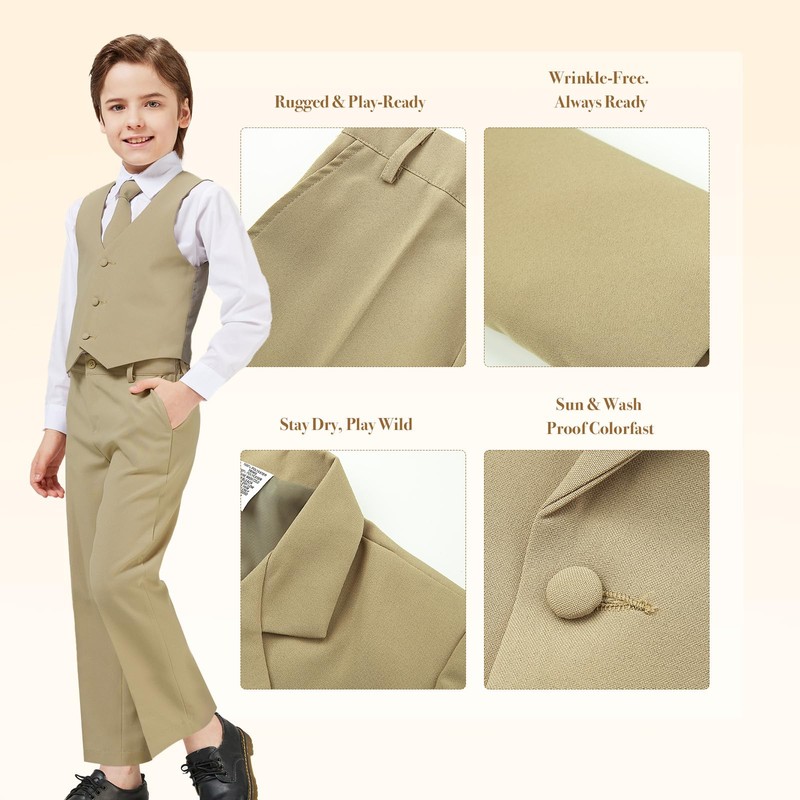 Luca Gabriel Toddler Boys' 5 Piece Classic Fit No Tail Formal Khaki Dress Suit Set with Tie and Vest