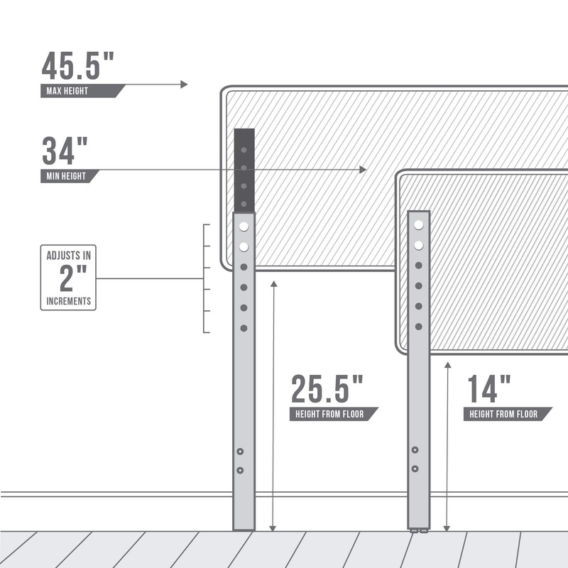 • Headboard height adjusts in 2-inch increments ranging from 34 inches to 46 inches to accommodate most bed frames and bases