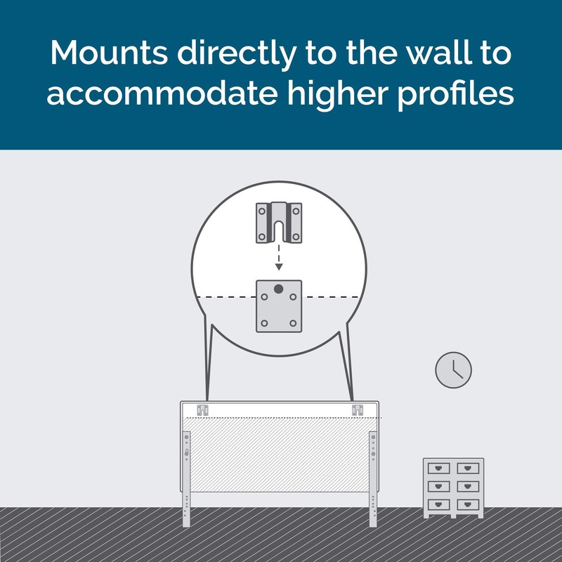 • Headboard fits most bed frames or bases and comes with pre-drilled legs, modification plates, and optional wall mounts