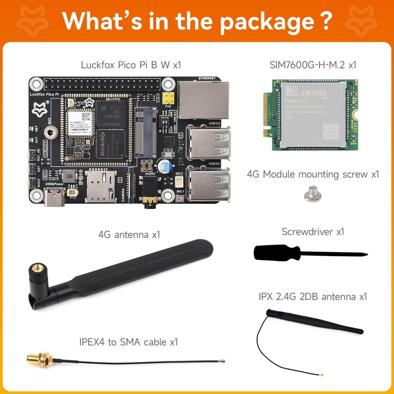 LUCKFOX Pico Pi B W 4G Kit - Linux Development Board, 0.5TOPS NPU, 8GB eMMC, Suitable for Embedded Application Development, with 4G & Wireless Module