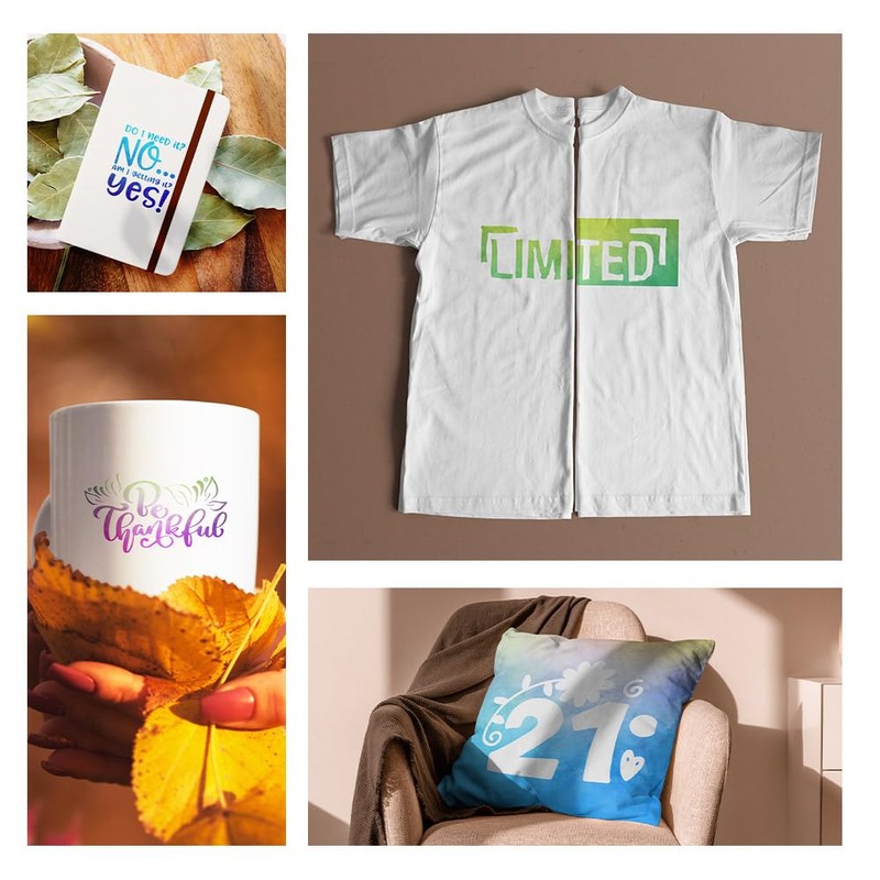- Brilliant colour gradients: these infusible transfer ink sheets offer vibrant and long-lasting colour gradients that enhance your designs on T-shirts, cups and other materials.