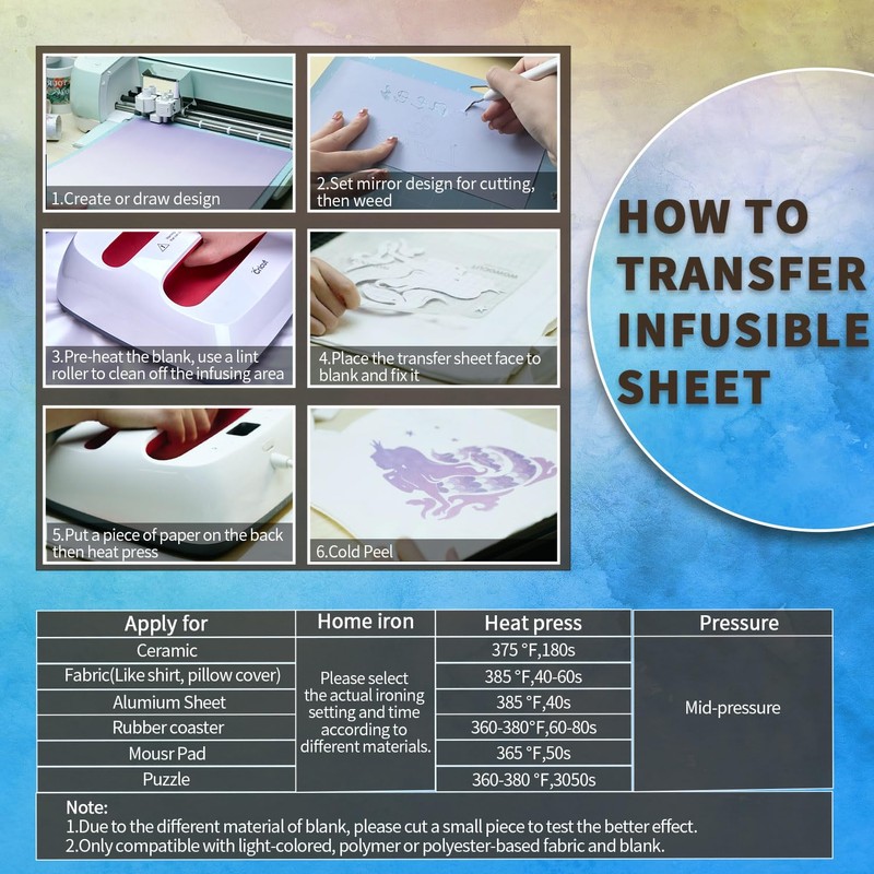 - Easy to use for beginners: even beginners can easily create stunning designs with these infusible transfer ink sheets, as they are easy to use and compatible with most standard transfer machines.