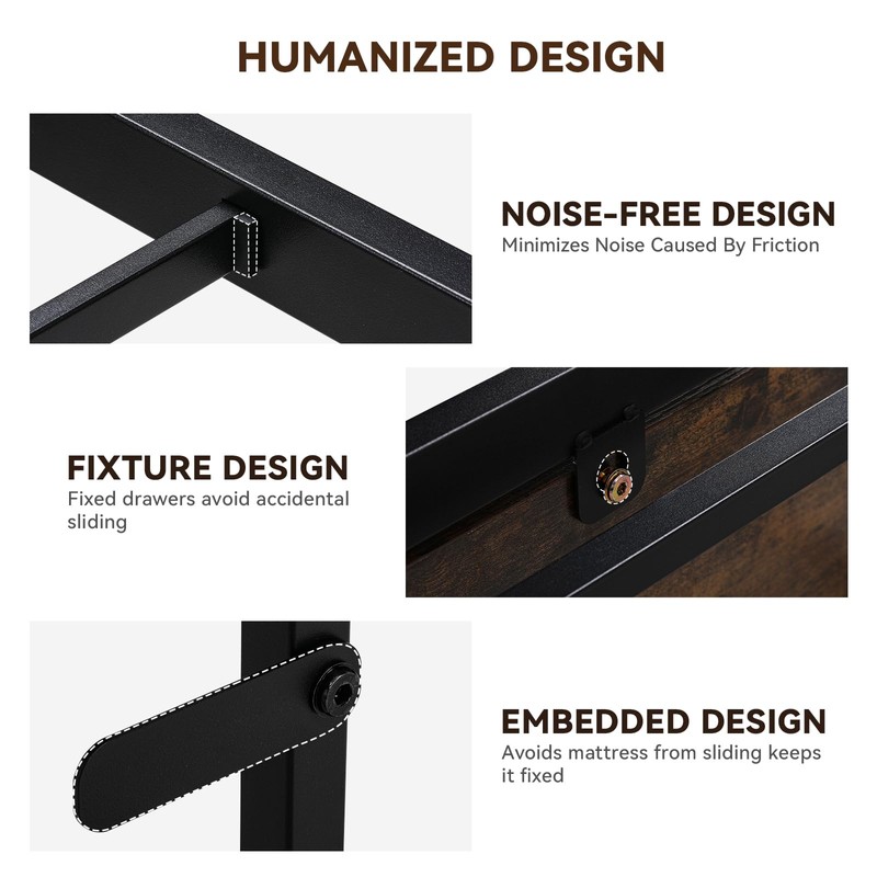 - 【Sturdy and Quiet Design】Built with a robust frame and durable joints,this bed frame includes EVA sound-absorbing strips under the metal bars,ensuring excellent stability and a noise-free experience for a restful night's sleep