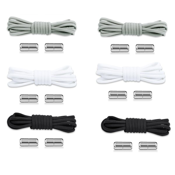 LUCKNIGHT Elastic Shoelaces, 6 Pairs No Tie Elastic Laces for Trainers, Flat Shoelaces with Metal Buckles, Universal Replacement Shoelaces for All Shoes Adults Kids (Black White Grey)