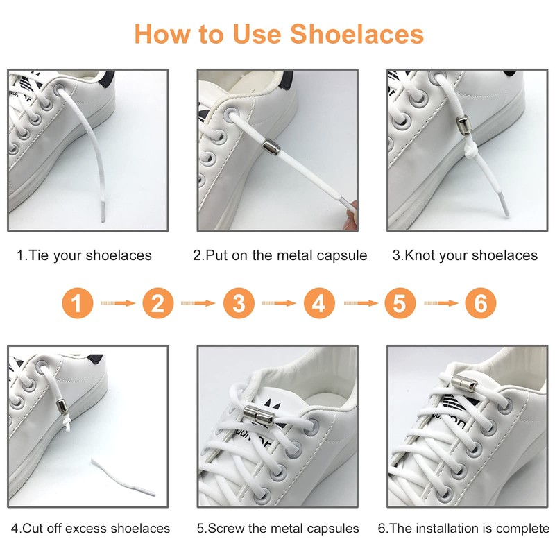 - 【Easy to Install】Tie the Running Trainer Laces and put the metal capsule on, then cut off excess laces and knot it up, tighten the screw lock last. Fasten once, and never tie the laces again, which is very convenient.