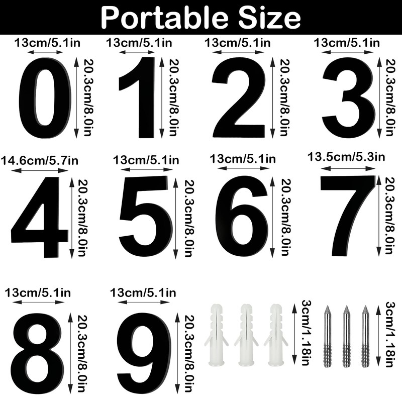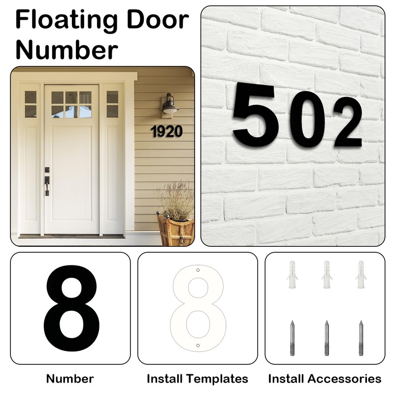 - 🏠 [Modern house number] The black house number is around 20.3 cm tall and 0.2 cm thick large size design, attach the floating home numbers to a wall.