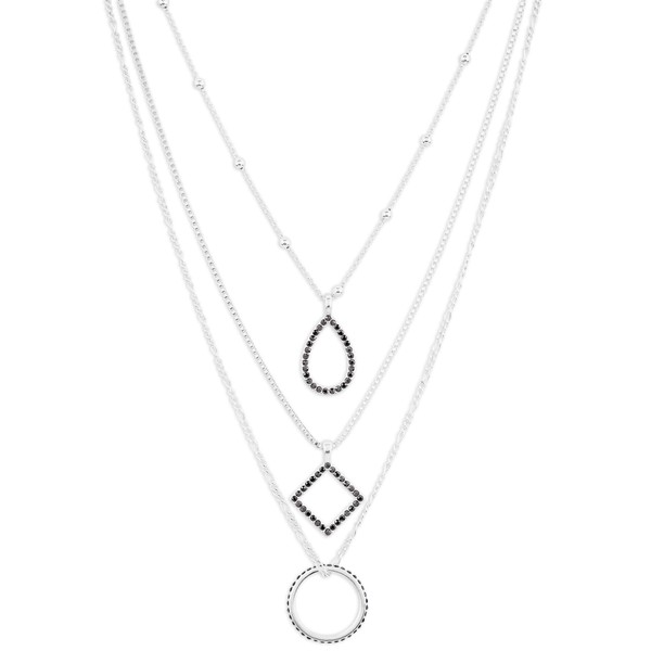 • A trio of open shaped pendants dangle from the fine silver-tone chains of this open shape chain layer necklace