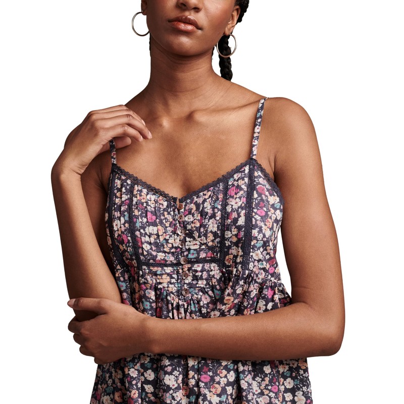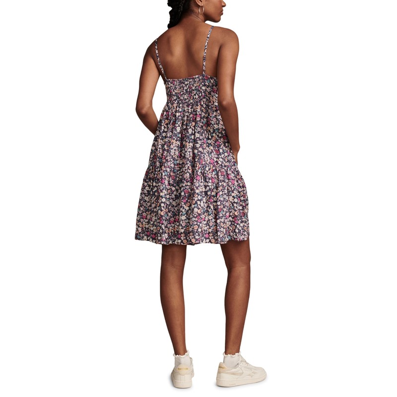 Lucky Brand Women's Printed Pintuck Bodice Mini, Nightshadow Multi