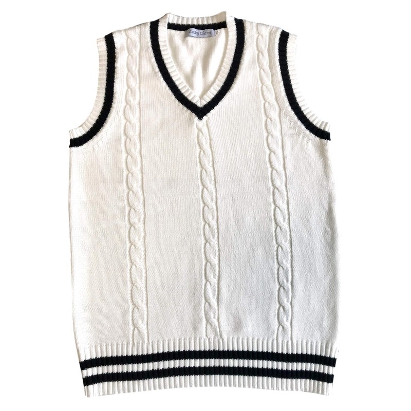 Lucky Charm Men's V Neck Cable Knit Vest, Lined, white