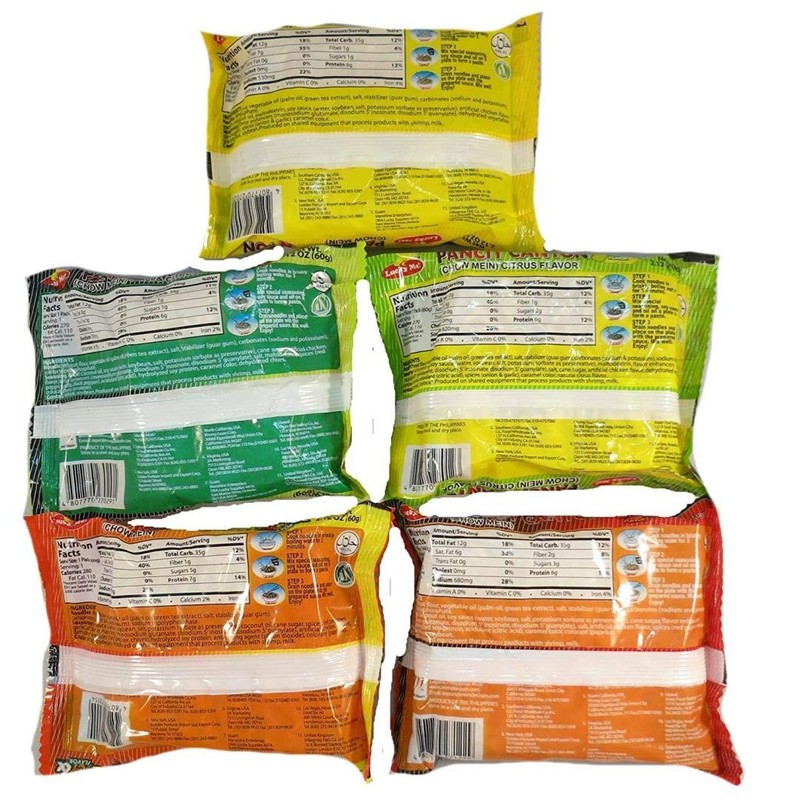 - This pack contains 10 single packs of Lucky Me Pancit Canton with 5 different flavor. Each pack is 2.12 oz.