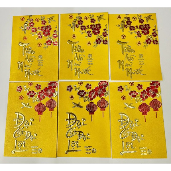 12 pcs of new year lucky envelope, brand new beautiful design for money pocket red envelope, yellow gold envelope for good luck any occasion.