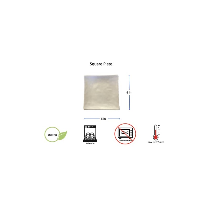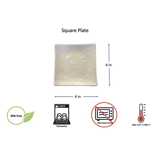Lucky Star Melamine Square Plates Dinner Appetizer Platter Snack Side Dish, 6" X 6" or 5" X 5", Off-White (48, 6" X 6")