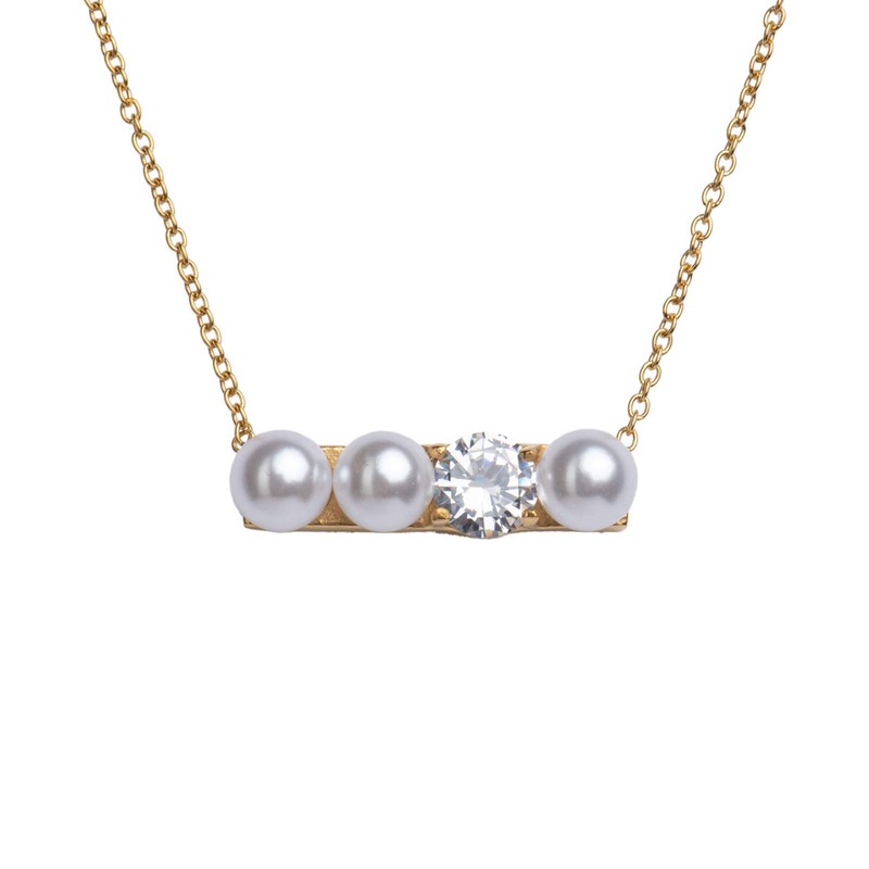 - MEDIDAS: Longitud cadena: 44cm más extensible de 5cm. Dije de perlas con zirconia: 2.3cm de ancho x 0.6cm de alto. Este collar para mujer de perlas con zirconia cúbica le quedará cómodamente a todos los tamaños de cuello. Es tan versátil como lo quieras ocupar, para salir de noche, o casual para el diario. El collar acero inoxidable mujer oro 18k de perlas ayudará a que tus outfits sean únicos.