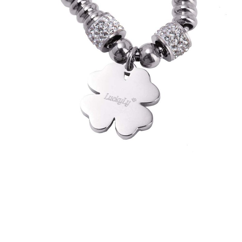 LuckyLy Pulseras de Mujer con Dije de Trébol de Buena Suerte con Zirconia Cúbica, Brazalete de Acero Inoxidable Color Plata – Regalos Mamá, Regalos para Mujer Cumpleaños, Modelo Tea