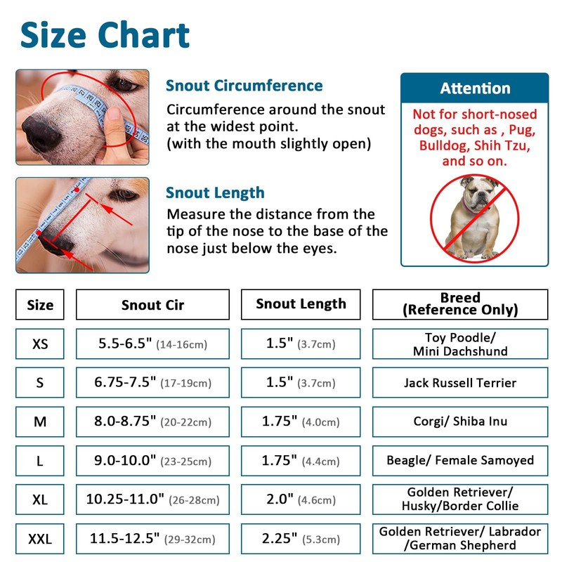 • Large Dog Muzzle-Size L fits for snout circumference between 9-10". The soft muzzle for large sized dog is suitable for Beagle, Female Samoyed, etc., but not for aggressive or highly anxious dogs. Note: Please DON'T choose size without mesuring! If the snout circumference is between sizes, SIZE UP!