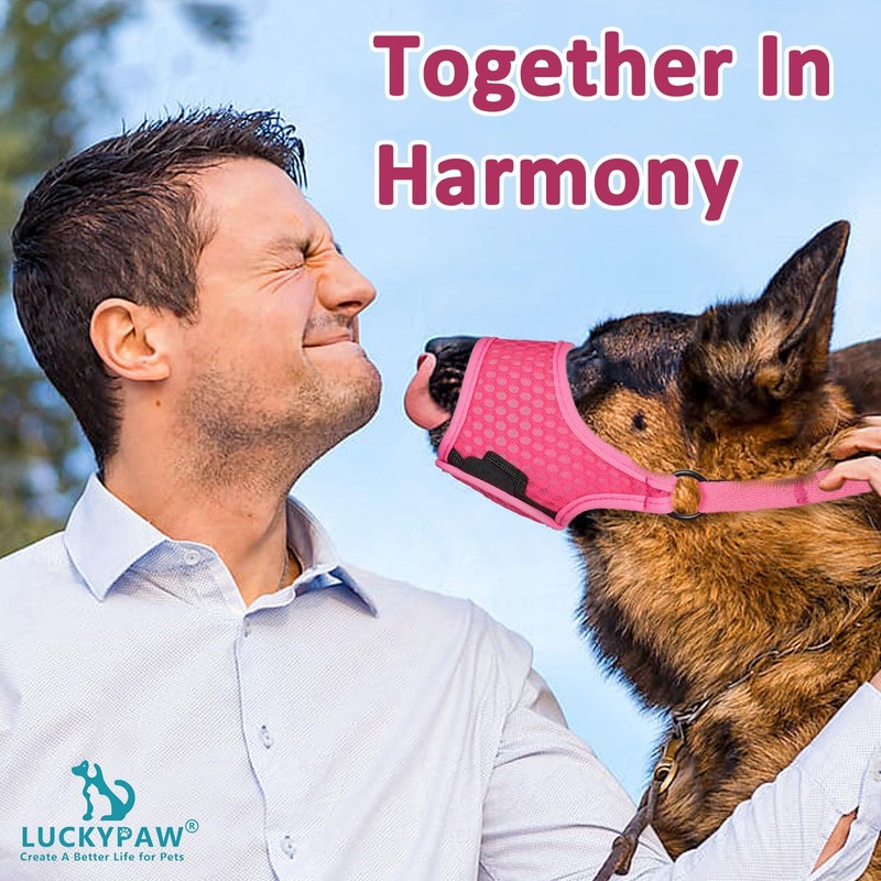 LUCKYPAW Soft & Durable Dog Muzzle-Different from traditional fabric muzzle, our upgraded cloth muzzle can be more breathable even in hot summer. Your dog can play, run and sniff nature with ease.