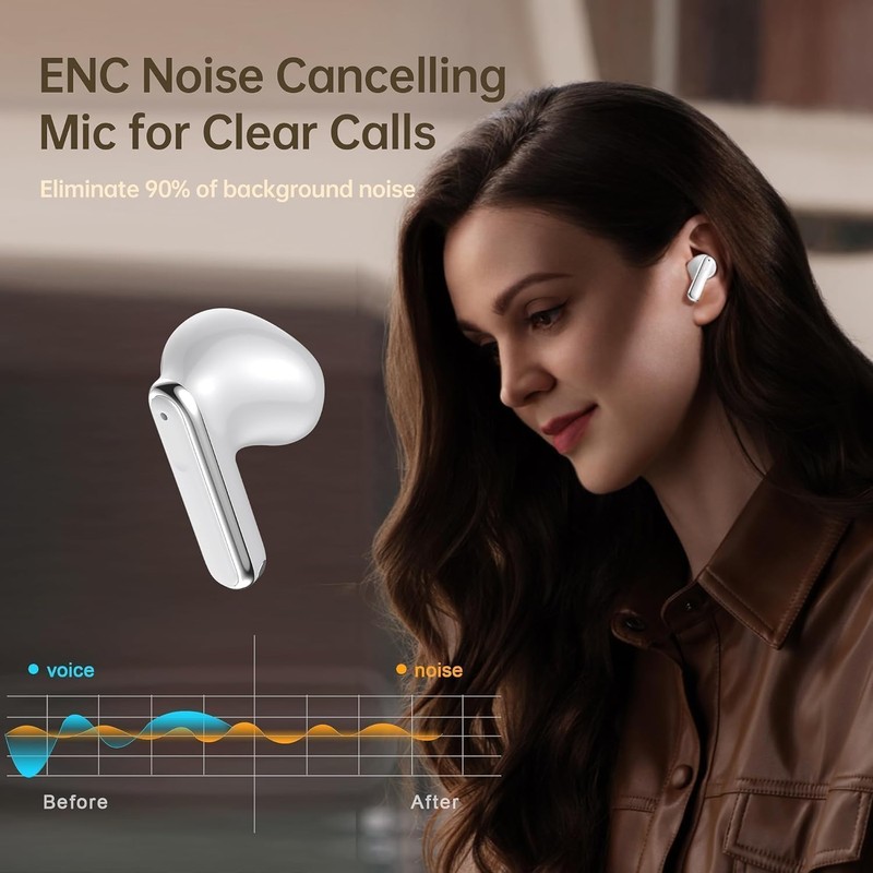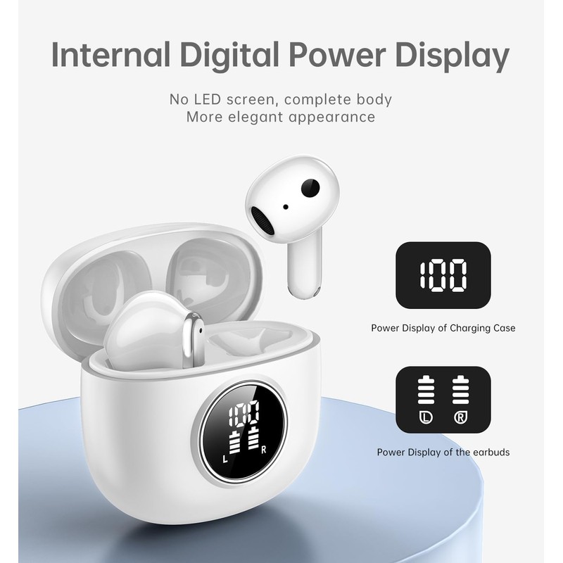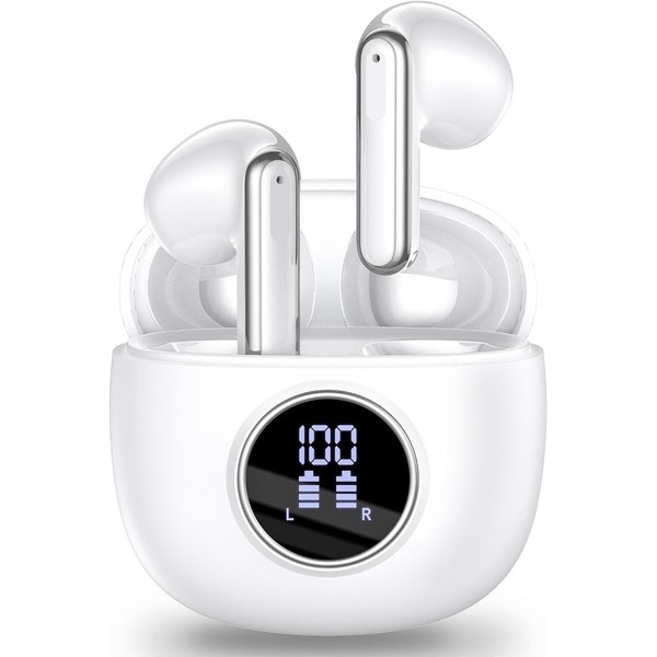 Luckyrao Wireless Earbuds, Bluetooth 5.4 Earphones In Ear with 4 HD microphone, 40H Playtime, HIFI Stereo In Ear Headphones, IPX7 Waterproof Bluetooth Earbuds, LED Display, USB-C, Sport/Work/White