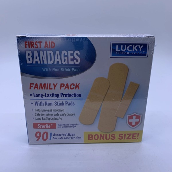 Luckys Super Soft First Aid Bandages Family Pk 90 Assorted Sizes