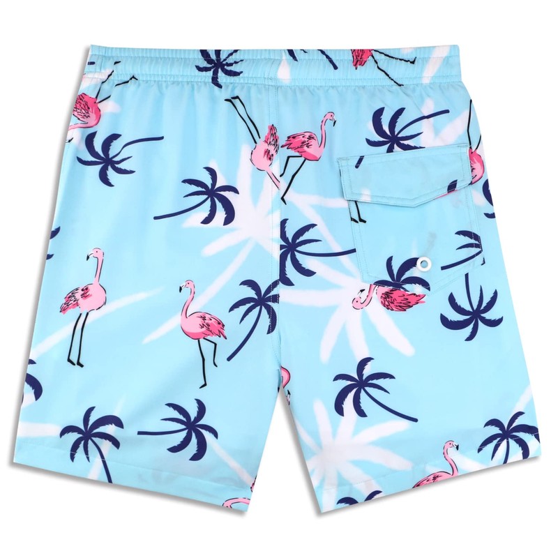 LUCOWEE Traje de baño para niños con forro calzones de compresión antirozaduras, pantalones cortos de natación elásticos UPF de secado rápido, Palmtree Flamingo, Small