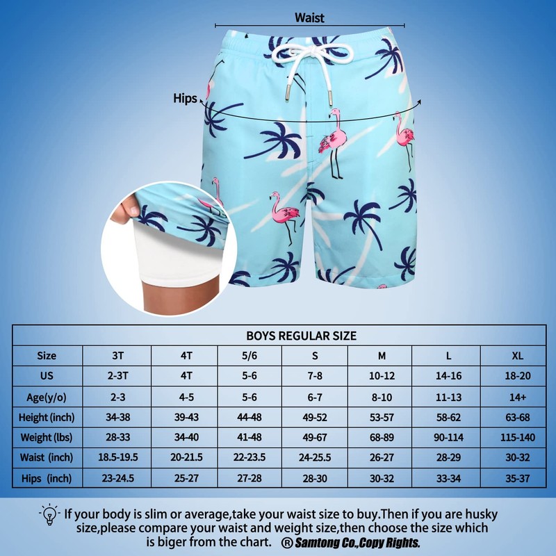 - ☀ Tamaño normal para niños: talla normal de EE. UU., tal vez sea más grande, lee la tabla de tallas en la imagen. Si tu niño es promedio, toma tu talla de cintura para comprar. Entonces si es de talla husky, compara su cintura con peso, luego elige una talla más cercana de la tabla. No elijas una talla más grande de lo habitual, ya que estos son de cintura ajustable y material elástico